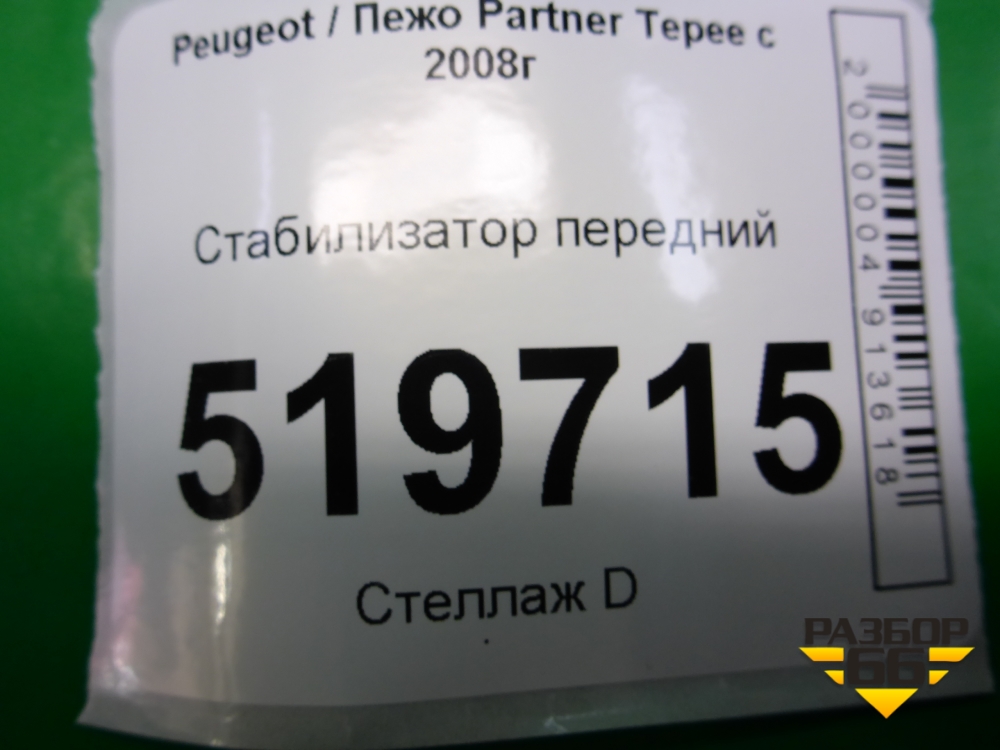 Стабилизатор передний для Peugeot Partner Tepee с 2008г (Партнер Типпи) в Краснодаре