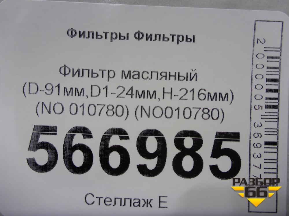 Фильтр масляный (D-91мм,D1-24мм,H-216мм) (NO 010780) (NO010780) для Расходники Фильтры в Краснодаре