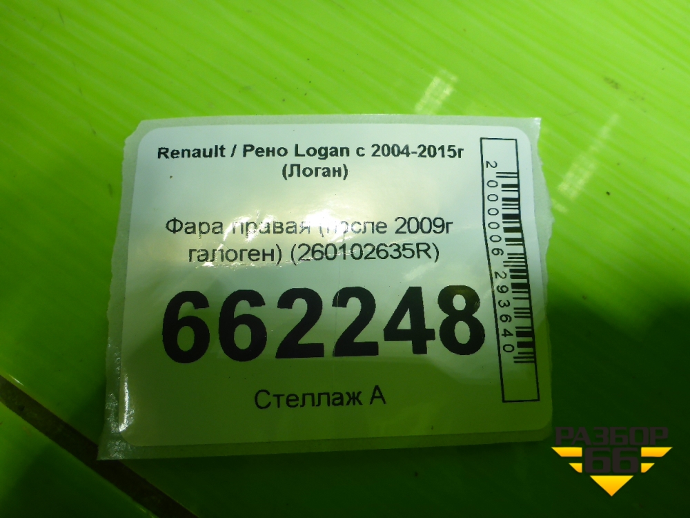 Фара правая (после 2009г галоген) (260102635R) для Renault Logan с 2004-2015г (Логан) в Краснодаре