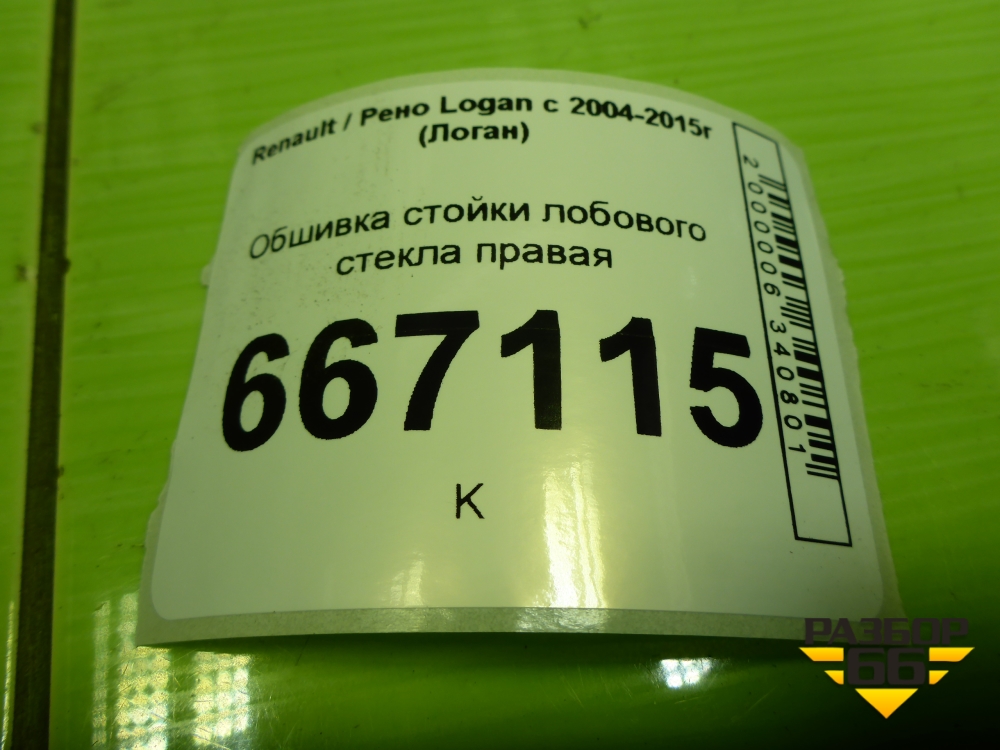 Обшивка стойки лобового стекла правая (769118975R) для Renault Logan с 2004-2015г (Логан) в Краснодаре