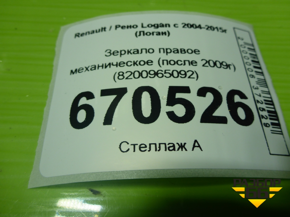 Зеркало правое механическое (после 2009г) (8200965092) для Renault Logan с 2004-2015г (Логан) в Краснодаре