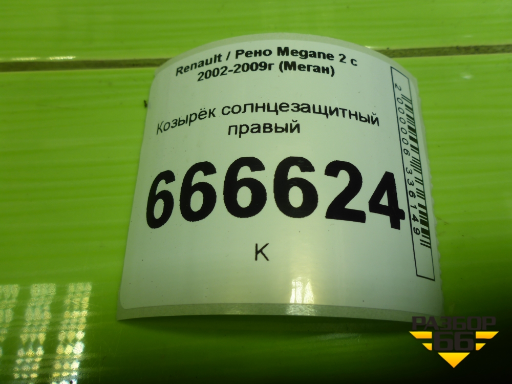 Козырёк солнцезащитный правый для Renault Megane 2 с 2002-2009г (Меган) в Краснодаре