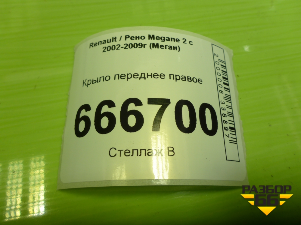Крыло переднее правое (8200495406) для Renault Megane 2 с 2002-2009г (Меган) в Краснодаре