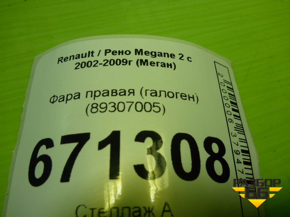 Фара правая (галоген) (89307005) для Renault Megane 2 с 2002-2009г (Меган) в Краснодаре