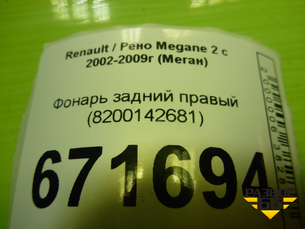 Фонарь задний правый (8200142681) для Renault Megane 2 с 2002-2009г (Меган) в Краснодаре