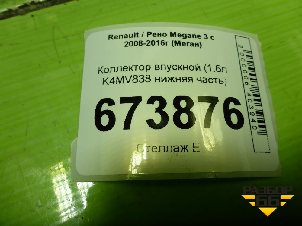 Коллектор впускной (1.6л K4MV838 нижняя часть) (8200329496) для Renault Megane 3 с 2008-2016г (Меган) в Краснодаре
