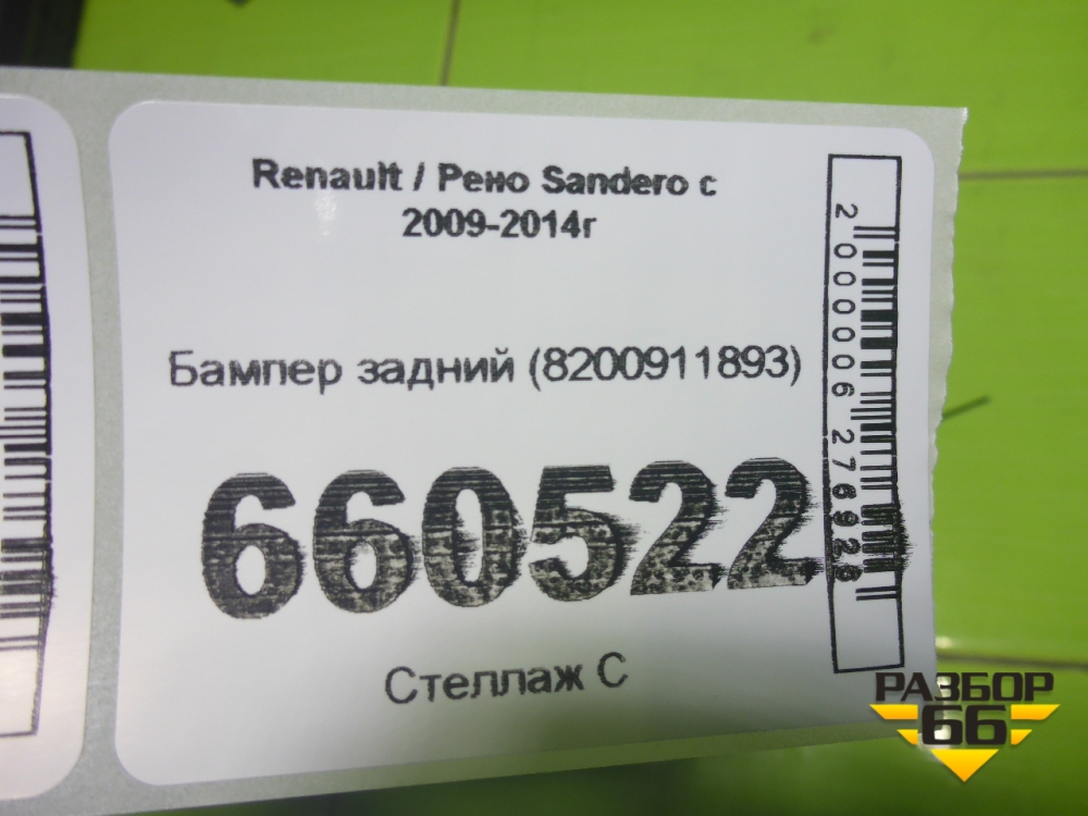 Бампер задний (8200911893) для Renault Sandero с 2009-2014г (Сандеро) в Краснодаре