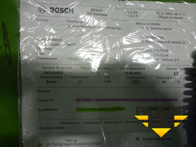 Состояние: Распылитель рабочий (280 бар) Магнит хороший