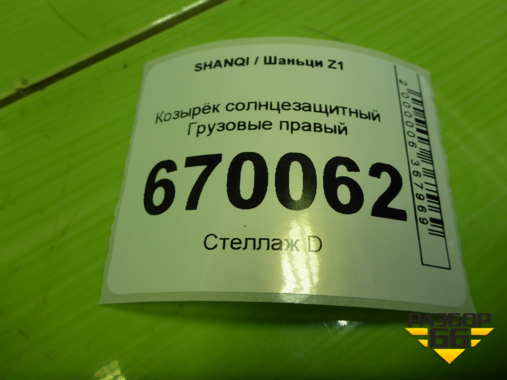 Козырёк солнцезащитный правый (EZ19201650012) для SHANQI Z1 в Краснодаре