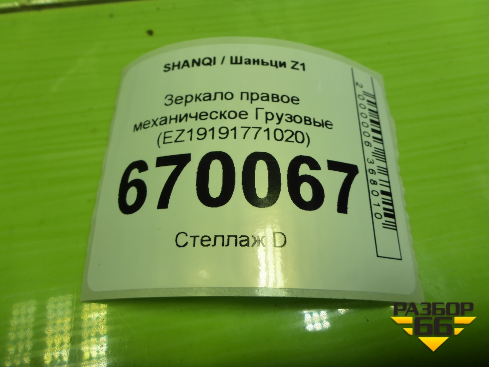 Зеркало правое механическое (EZ19191771020) для SHANQI Z1 в Краснодаре