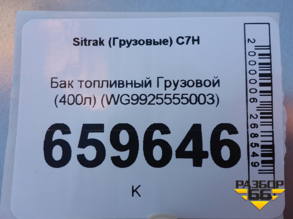 Бак топливный Грузовой (400л) (WG9925555003) для Sitrak C7H (С7Н) в Краснодаре