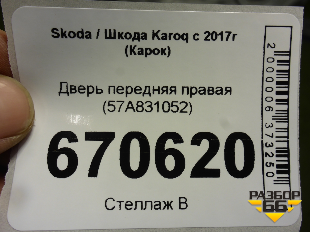 Дверь передняя правая (57A831052) для Skoda Karoq с 2017г (Карок) в Краснодаре