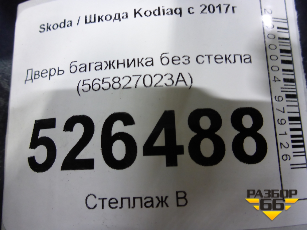 Дверь багажника без стекла (565827023A) для Skoda Kodiaq с 2017г (Кодиак) в Краснодаре
