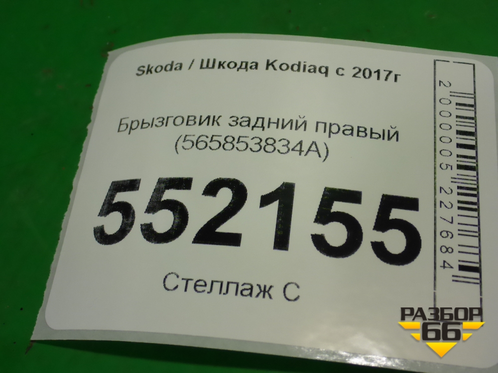 Брызговик задний правый (565853834A) для Skoda Kodiaq с 2017г (Кодиак) в Краснодаре