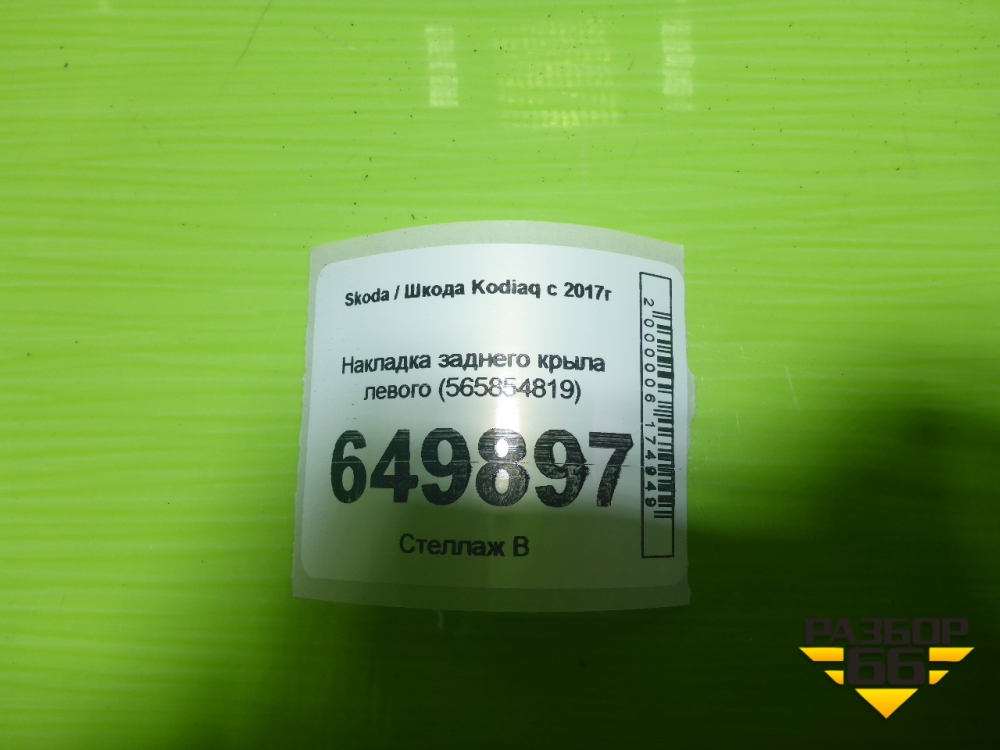 Накладка заднего крыла левого (565854819) для Skoda Kodiaq с 2017г (Кодиак) в Краснодаре
