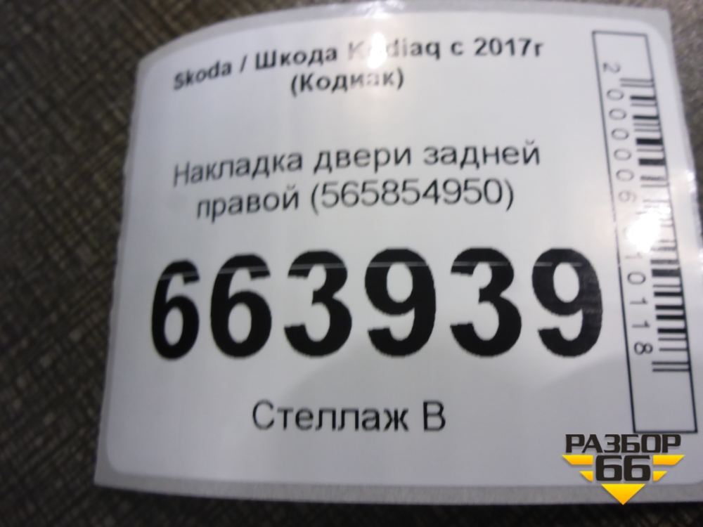 Накладка двери задней правой (565854950) для Skoda Kodiaq с 2017г (Кодиак) в Краснодаре