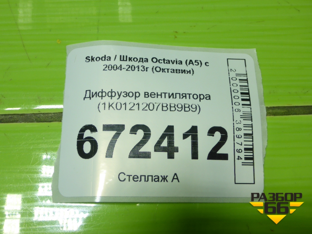 Диффузор вентилятора (1K0121207BB9B9) для Skoda Octavia (А5) с 2004-2013г (Октавия) в Краснодаре