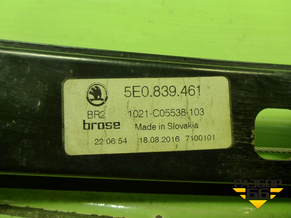 Стеклоподъёмник электрический задний левый (без моторчика) (5E0839461) для Skoda Octavia (A7) с 2013г (Октавия) в Краснодаре
