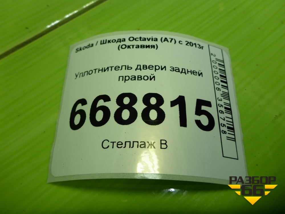 Уплотнитель двери задней правой (лифтебек) (5E5867368F) для Skoda Octavia (A7) с 2013г (Октавия) в Краснодаре