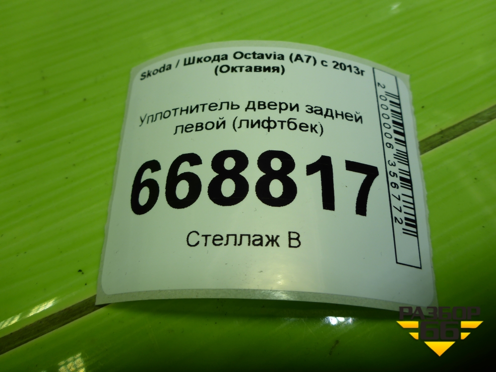 Уплотнитель двери задней левой (лифтбек) (5E5867367F) для Skoda Octavia (A7) с 2013г (Октавия) в Краснодаре