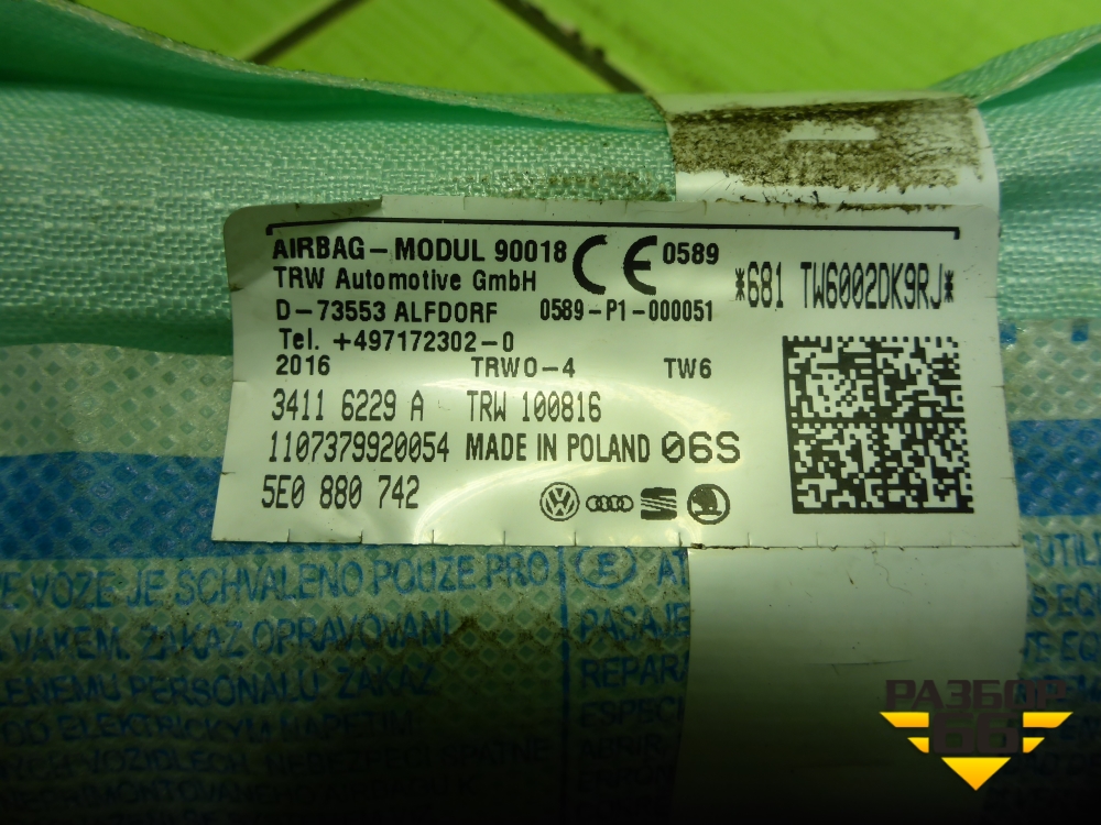Подушка безопасности боковая шторка правая (лифтбек) (5E0880742) для Skoda Octavia (A7) с 2013г (Октавия) в Краснодаре