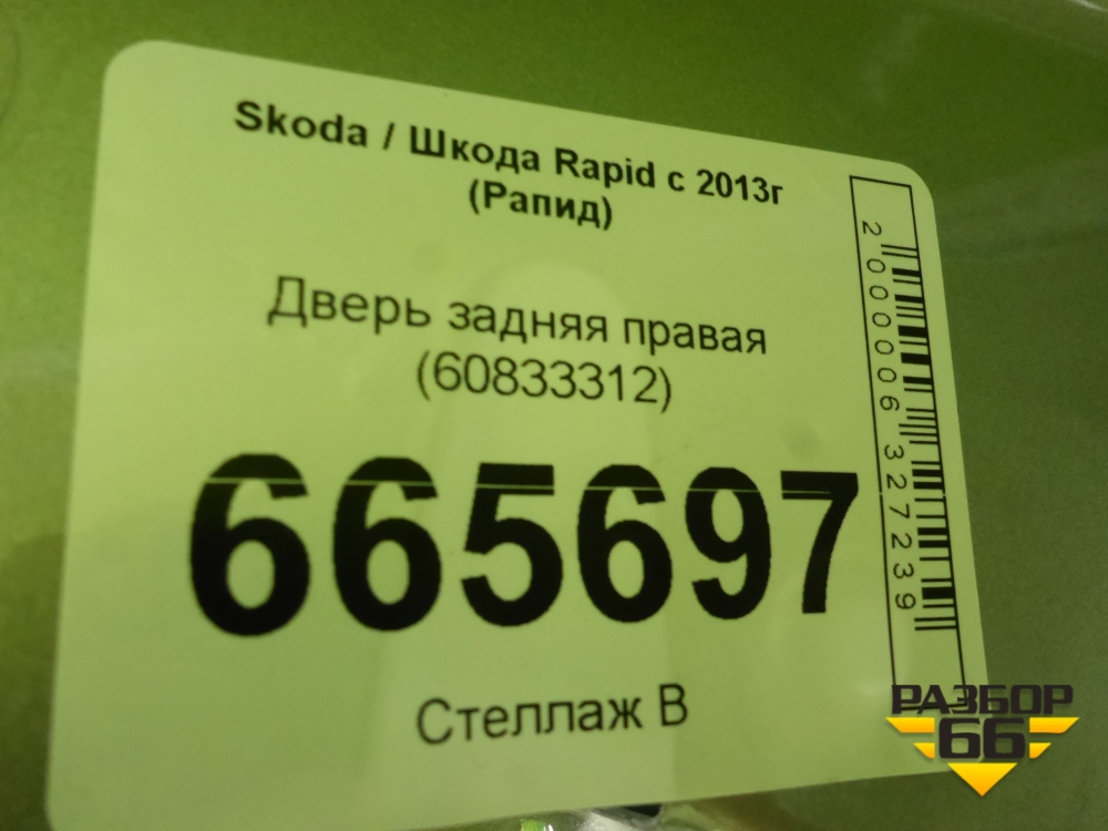 Дверь задняя правая (60833312) для Skoda Rapid с 2013г (Рапид) в Краснодаре