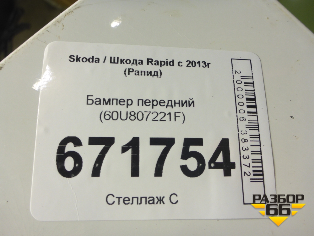 Бампер передний (60U807221F) для Skoda Rapid с 2013г (Рапид) в Краснодаре