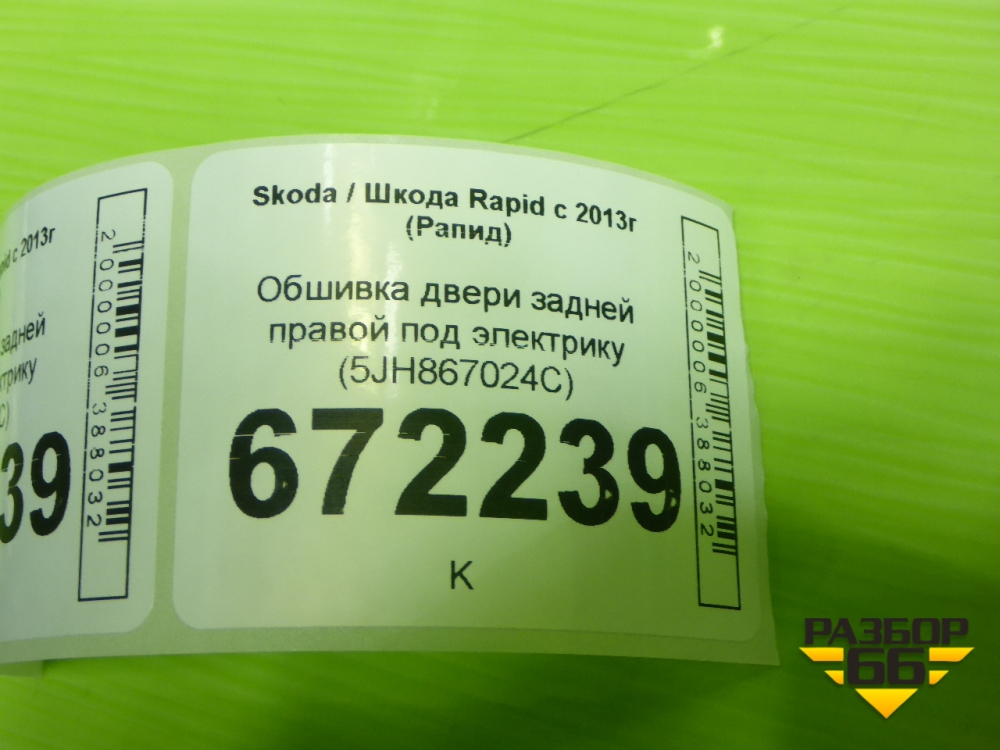Обшивка двери задней правой под электрику (5JH867024C) для Skoda Rapid с 2013г (Рапид) в Краснодаре