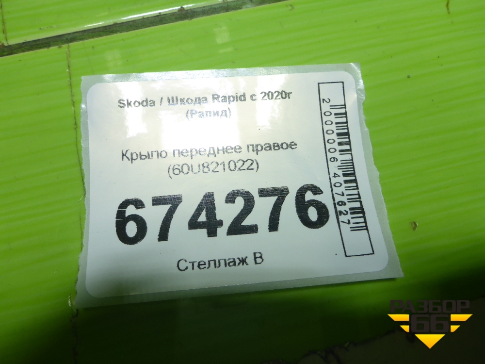 Крыло переднее правое (60U821022) для Skoda Rapid с 2020г (Рапид) в Краснодаре