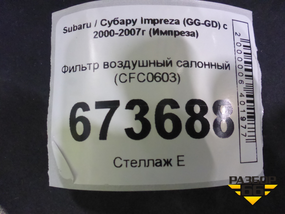 Фильтр воздушный салонный (CFC0603) для Subaru Impreza (GG-GD) с 2000-2007г (Импреза) в Краснодаре