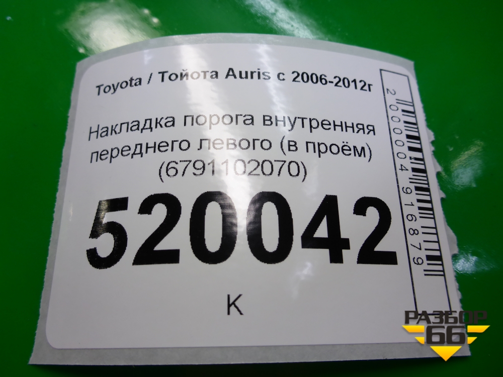 Накладка порога внутренняя переднего левого (в проём) (6791102070) для Toyota Auris с 2006-2012г (Аурис) в Краснодаре