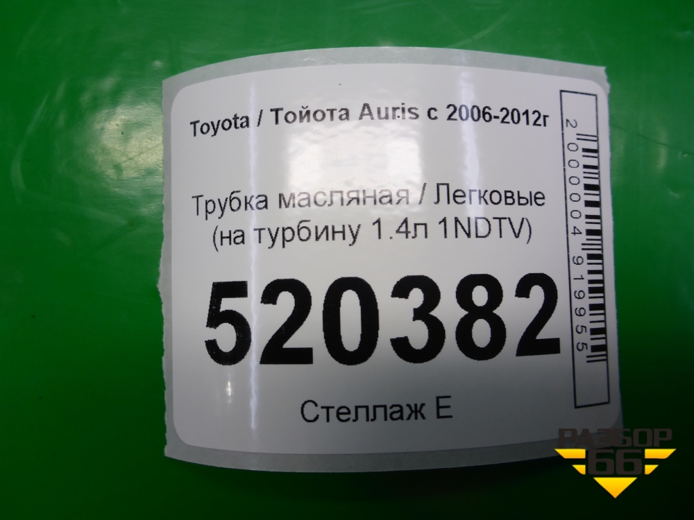 Трубка масляная (на турбину 1.4л 1NDTV) для Toyota Auris с 2006-2012г (Аурис) в Краснодаре
