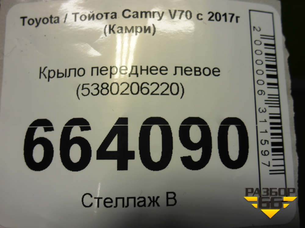 Крыло переднее левое (5380206220) для Toyota Camry V70 с 2017г (Камри) в Краснодаре