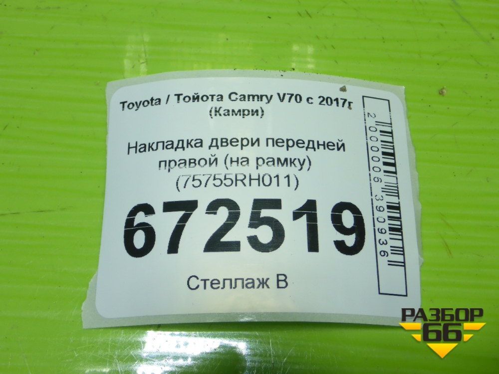Накладка двери передней правой (на рамку) (75755RH011) для Toyota Camry V70 с 2017г (Камри) в Краснодаре