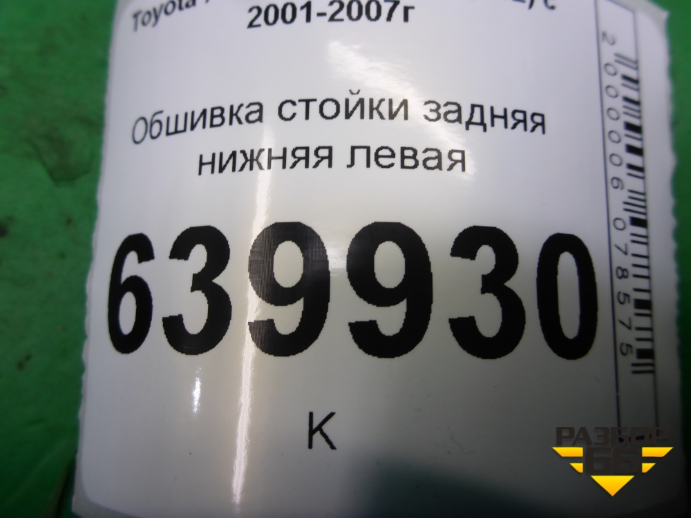Обшивка стойки задняя нижняя левая (6255202020) для Toyota Corolla (E12) с 2001-2007г (Королла 120) в Краснодаре