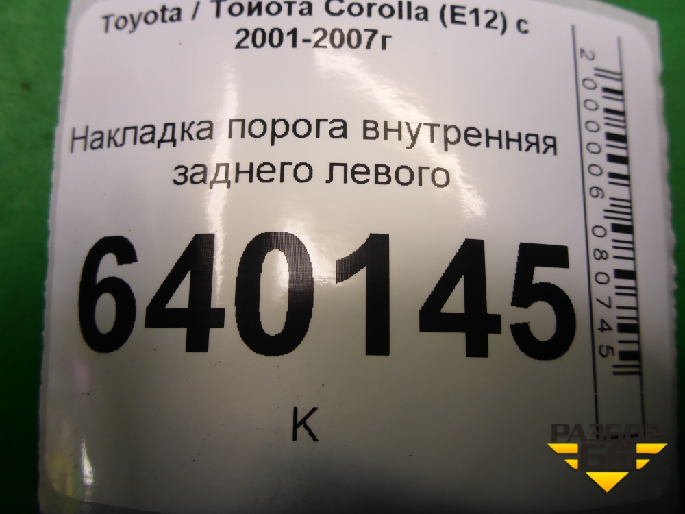 Накладка порога внутренняя заднего левого (6791602020) для Toyota Corolla (E12) с 2001-2007г (Королла 120) в Краснодаре