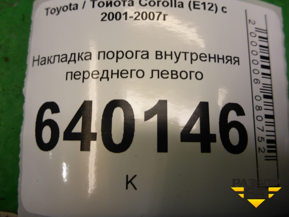Накладка порога внутренняя переднего левого (6791402080A) для Toyota Corolla (E12) с 2001-2007г (Королла 120) в Краснодаре