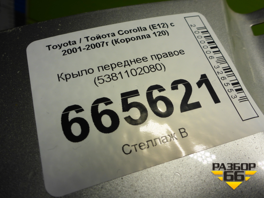 Крыло переднее правое (5381102080) для Toyota Corolla (E12) с 2001-2007г (Королла 120) в Краснодаре