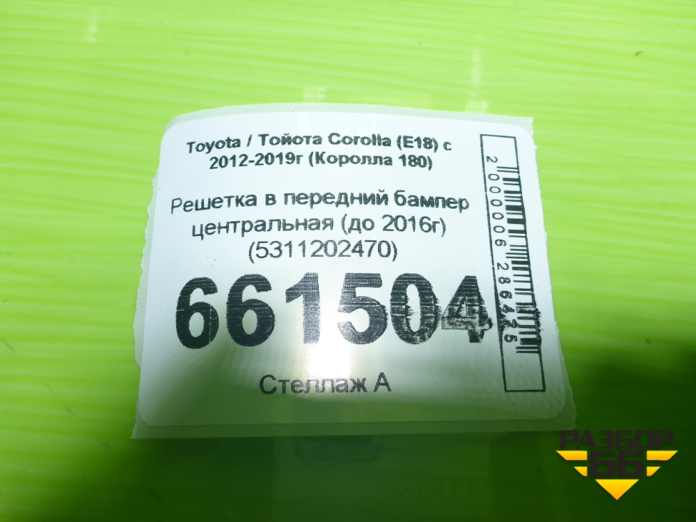 Решетка в передний бампер центральная (до 2016г) (5311202470) для Toyota Corolla (E18) с 2012-2019г (Королла 180) в Краснодаре