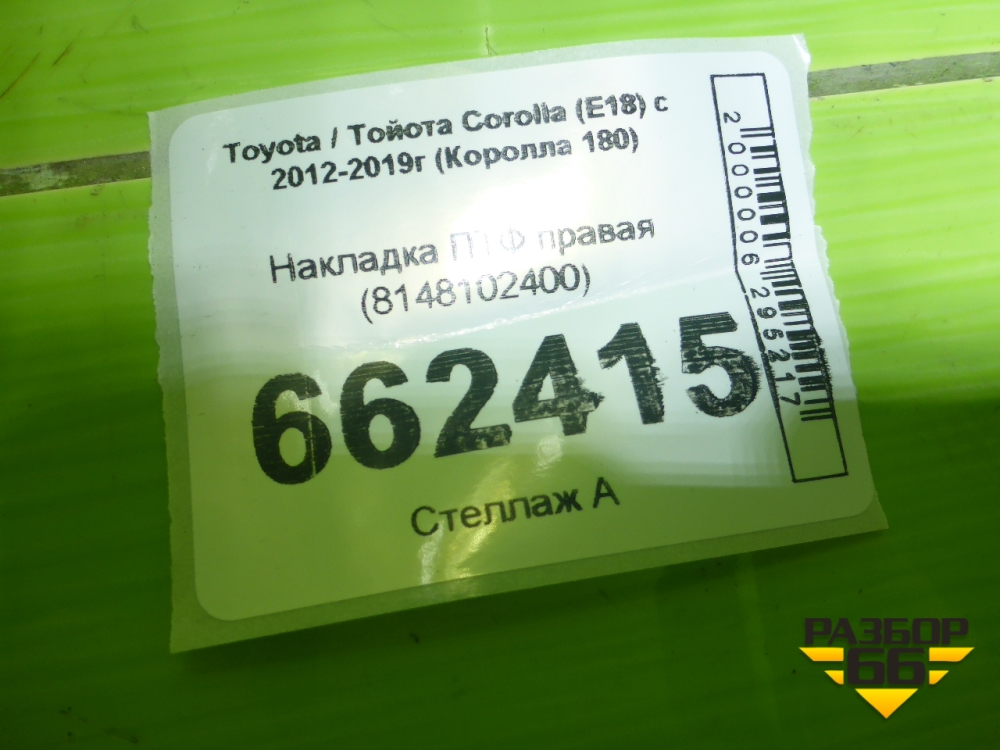Накладка ПТФ правая (8148102400) для Toyota Corolla (E18) с 2012-2019г (Королла 180) в Краснодаре