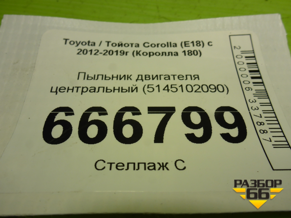 Пыльник двигателя центральный (5145102090) для Toyota Corolla (E18) с 2012-2019г (Королла 180) в Краснодаре