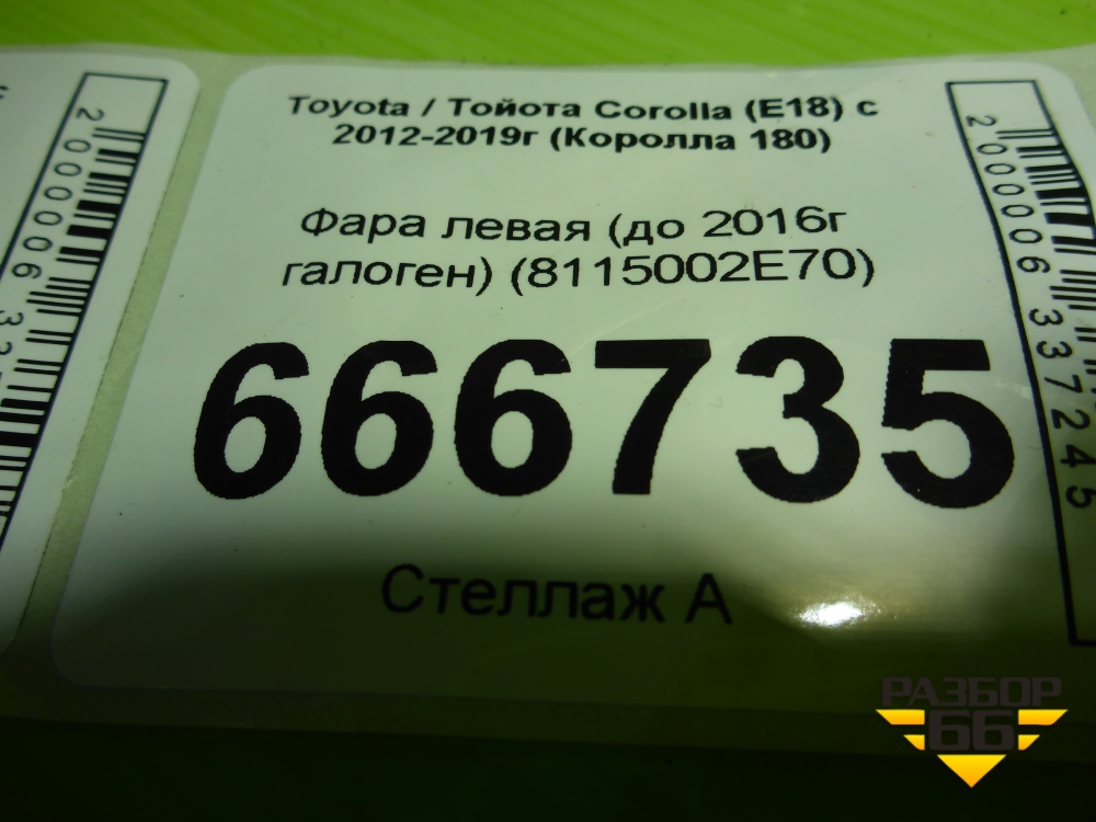 Фара левая (до 2016г галоген) (8115002E70) для Toyota Corolla (E18) с 2012-2019г (Королла 180) в Краснодаре