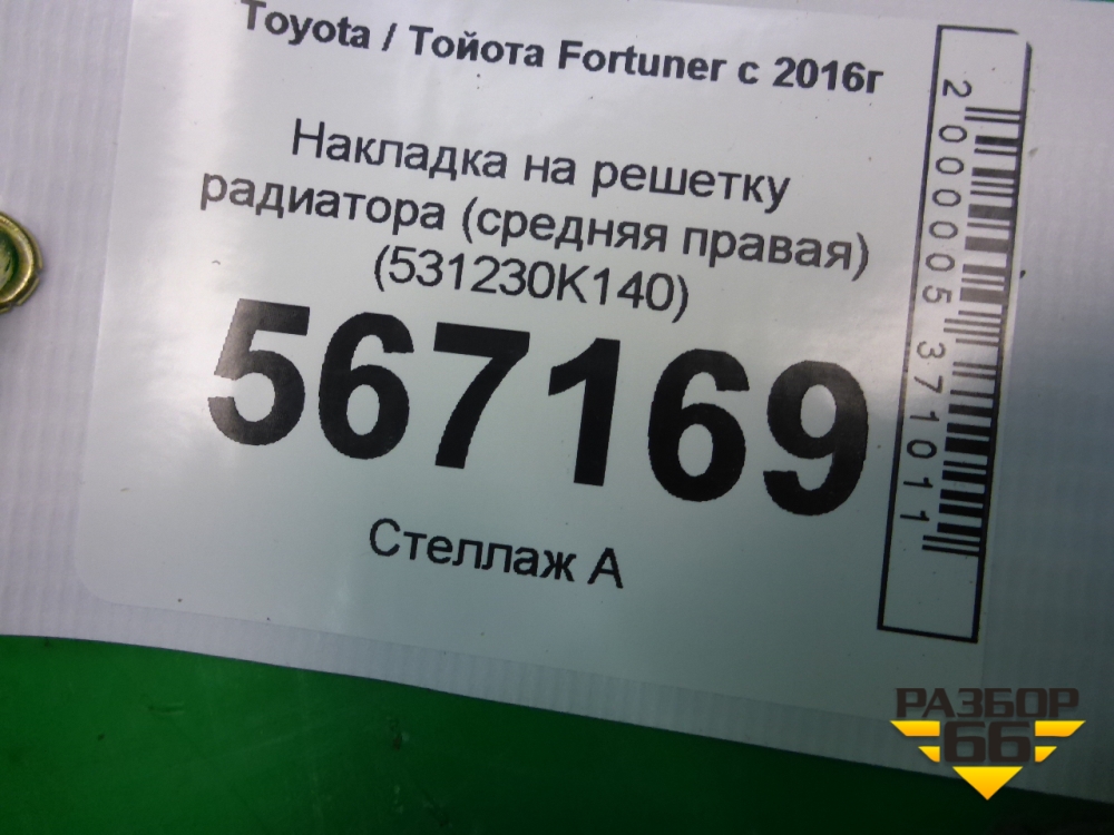 Накладка на решетку радиатора (средняя правая) (531230K140) для Toyota Fortuner с 2016г (Фортунер) в Краснодаре