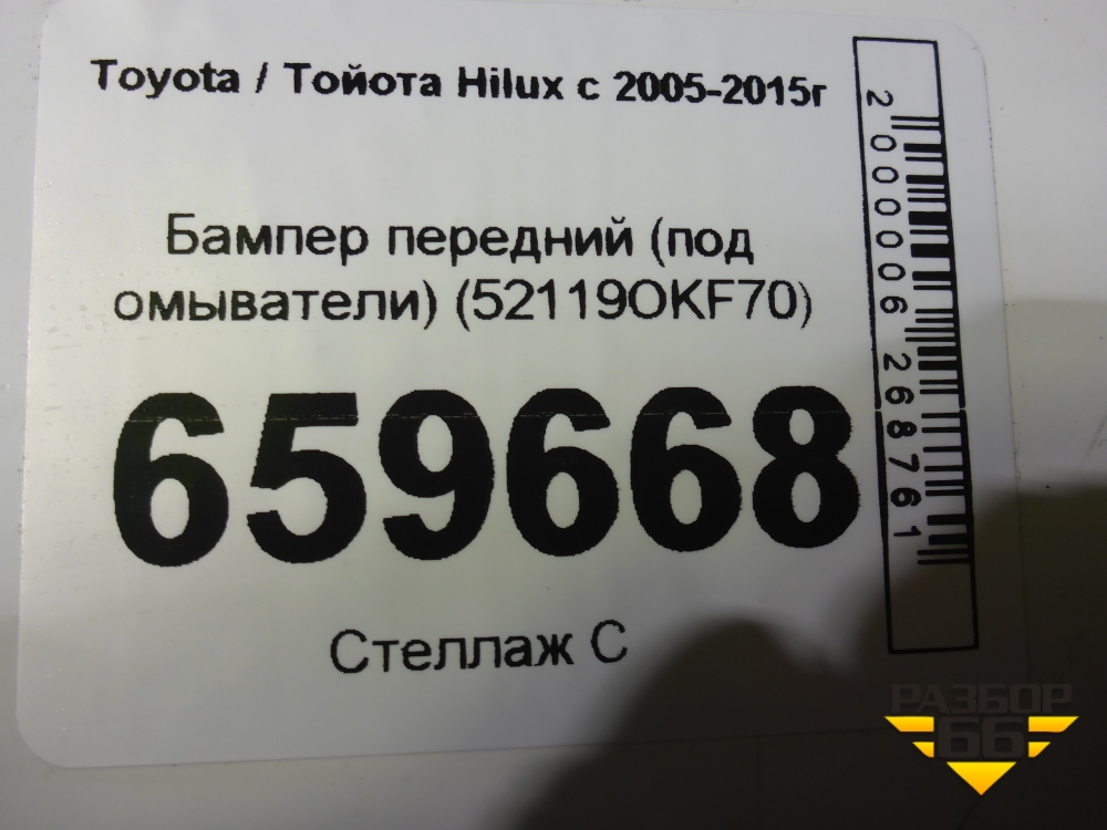 Бампер передний (под омыватели) (52119OKF70) для Toyota Hilux с 2005-2015г (Хайлюкс) в Краснодаре
