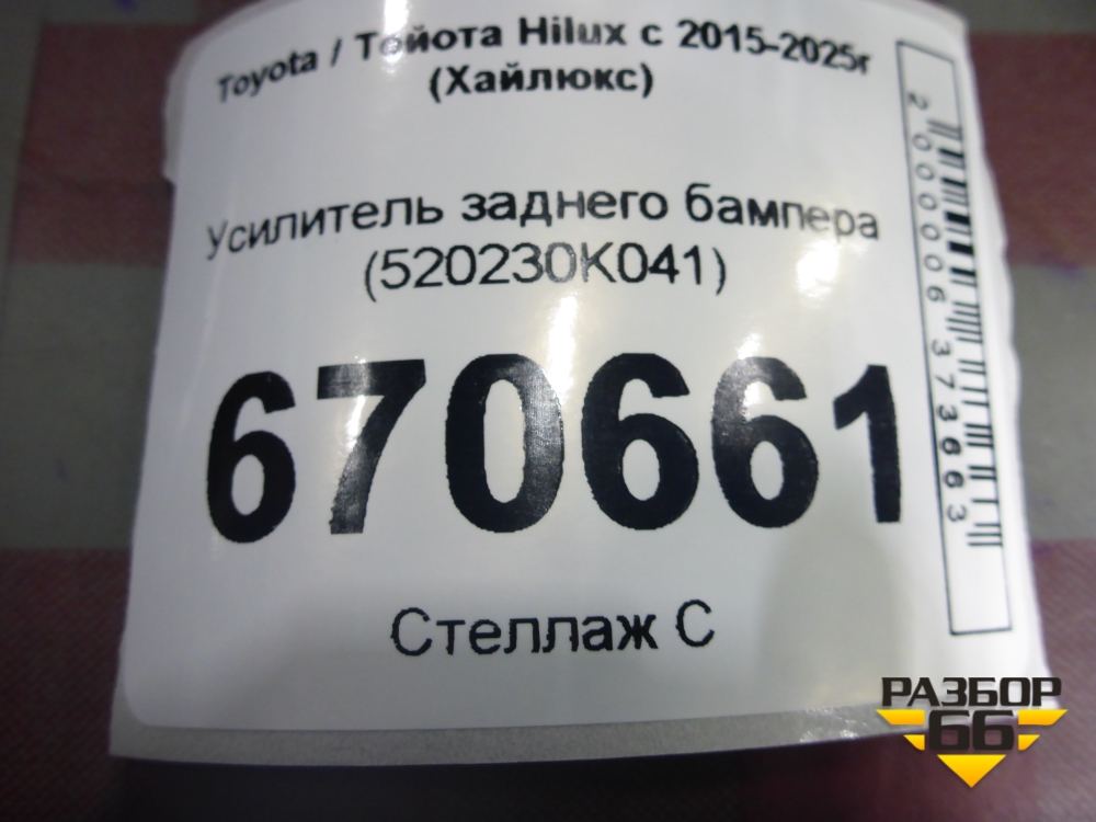 Усилитель заднего бампера (520230K041) для Toyota Hilux с 2015-2025г (Хайлюкс) в Краснодаре