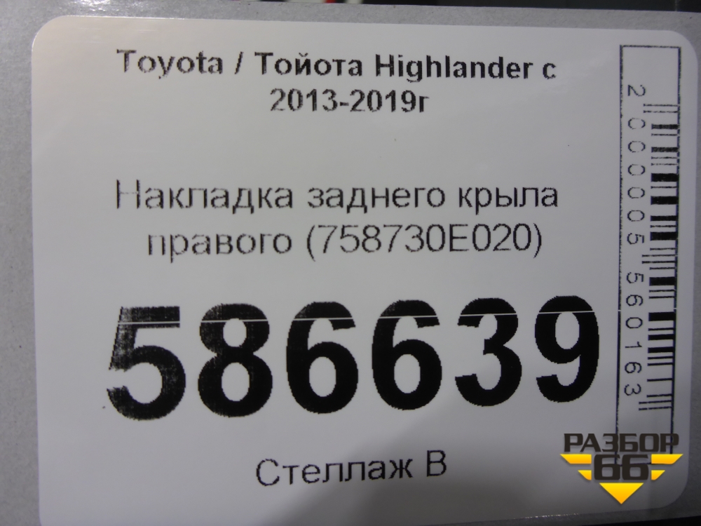 Накладка заднего крыла правого (758730E020) для Toyota Highlander с 2013-2021г (Хайлендер) в Краснодаре