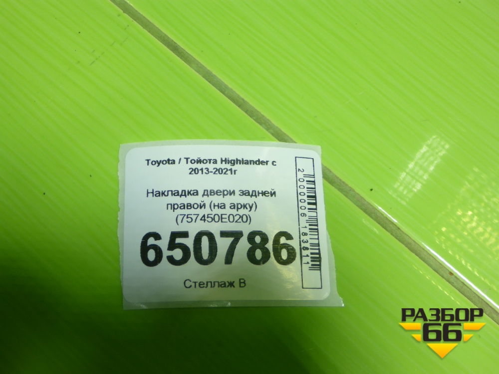 Накладка двери задней правой (на арку) (757450E020) для Toyota Highlander с 2013-2021г (Хайлендер) в Краснодаре