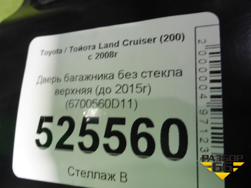 Дверь багажника без стекла верхняя (до 2015г) (6700560D11) для Toyota Land Cruiser (200) с 2008г (Ленд Крузер) в Краснодаре