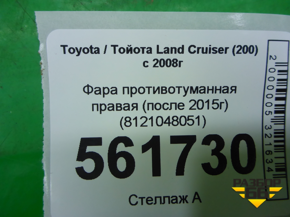Фара противотуманная правая (после 2015г) (8121048051) для Toyota Land Cruiser (200) с 2008г (Ленд Крузер) в Краснодаре