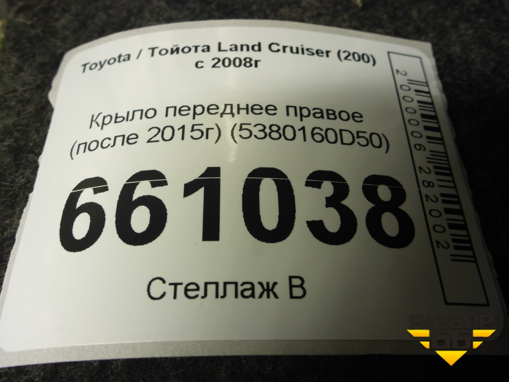 Крыло переднее правое (после 2015г) (5380160D50) для Toyota Land Cruiser (200) с 2008г (Ленд Крузер) в Краснодаре